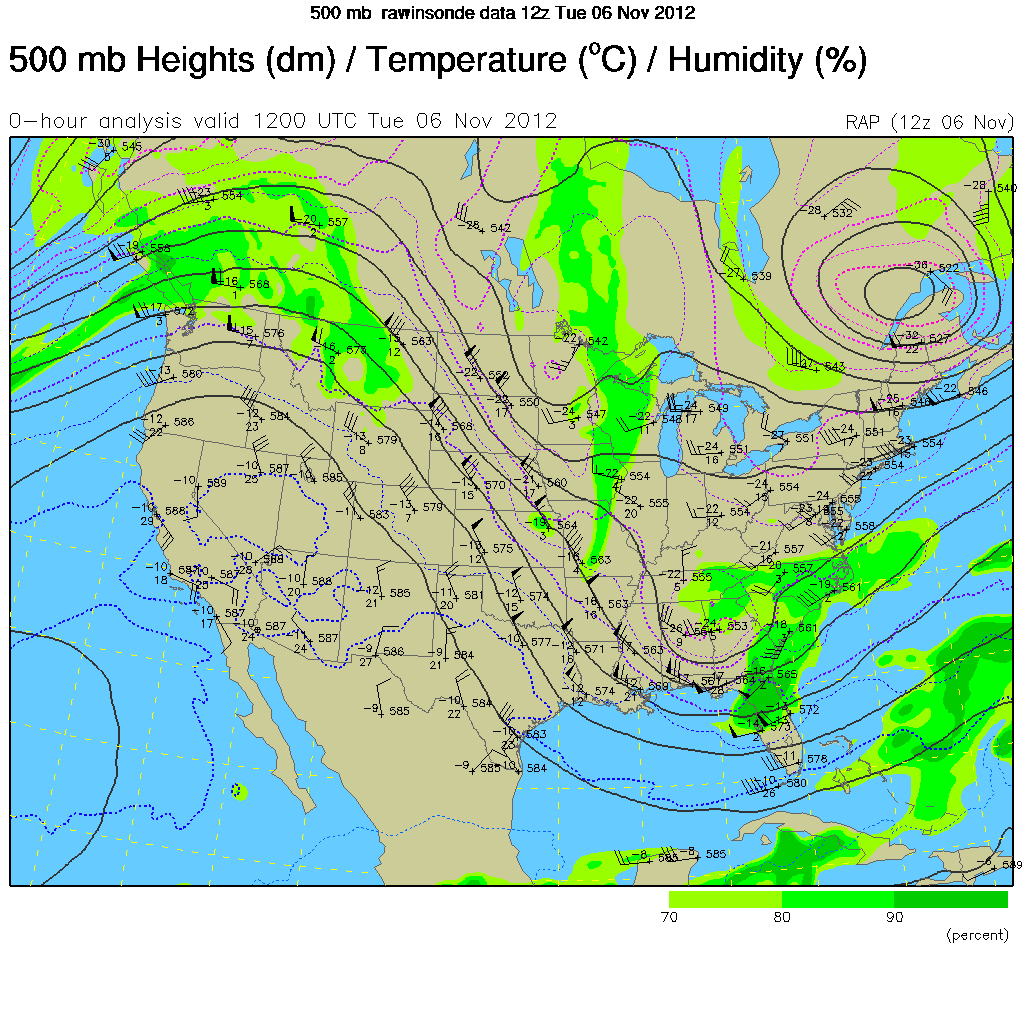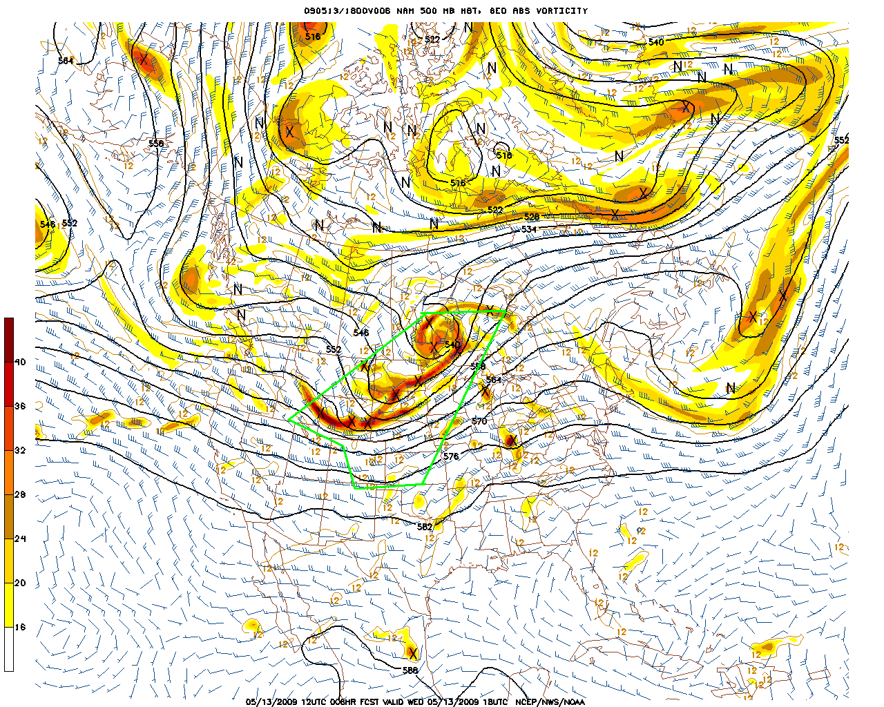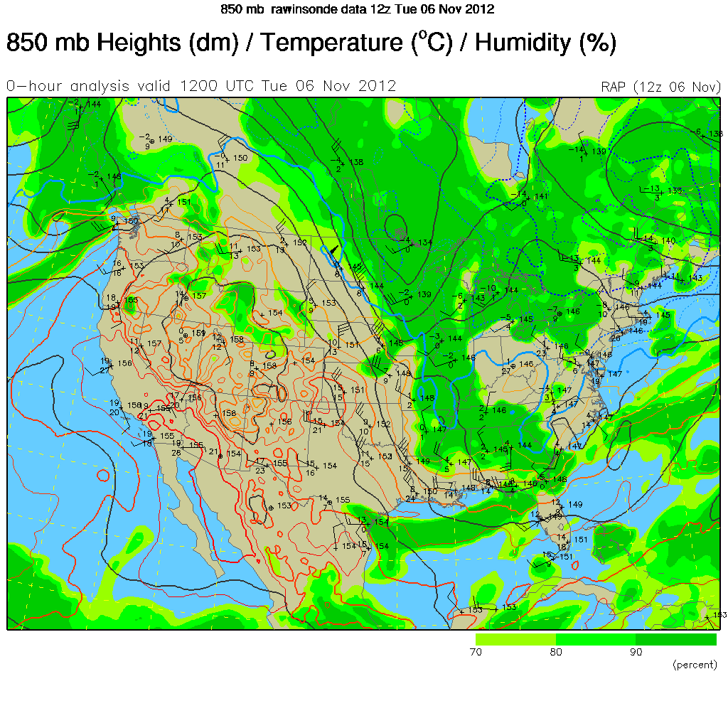 A4: Using only the wind information on these 850 and 500 hPa charts: (winds are in knots, half barb / full barb / triangle = 5 / 10 / 50 knts)